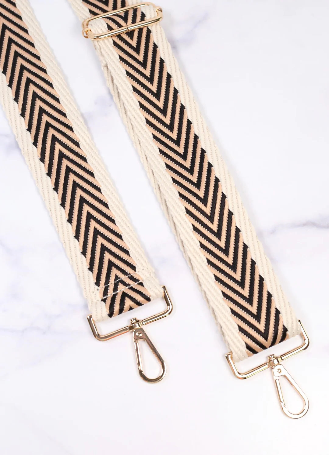 This adjustable woven fabric crossbody strap is great to clip onto any handbag! It has a chevron pattern and will be a great accessory to bring a little extra pop to your outfit.