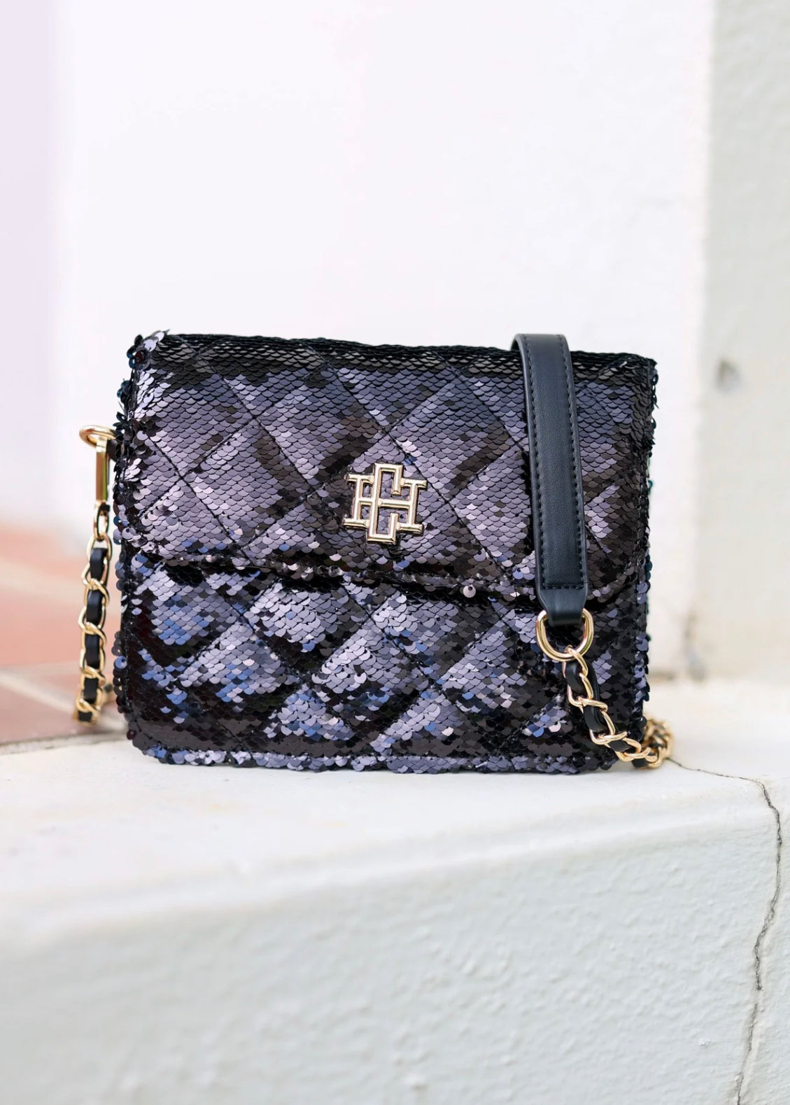 Evelyn Crossbody Black Sequin Bag