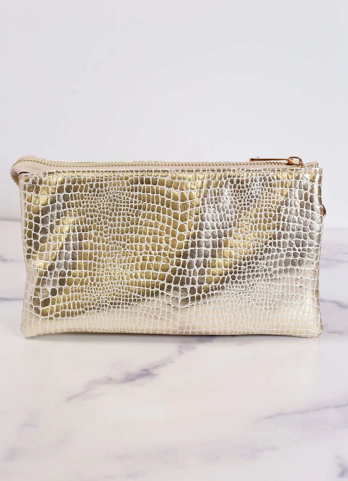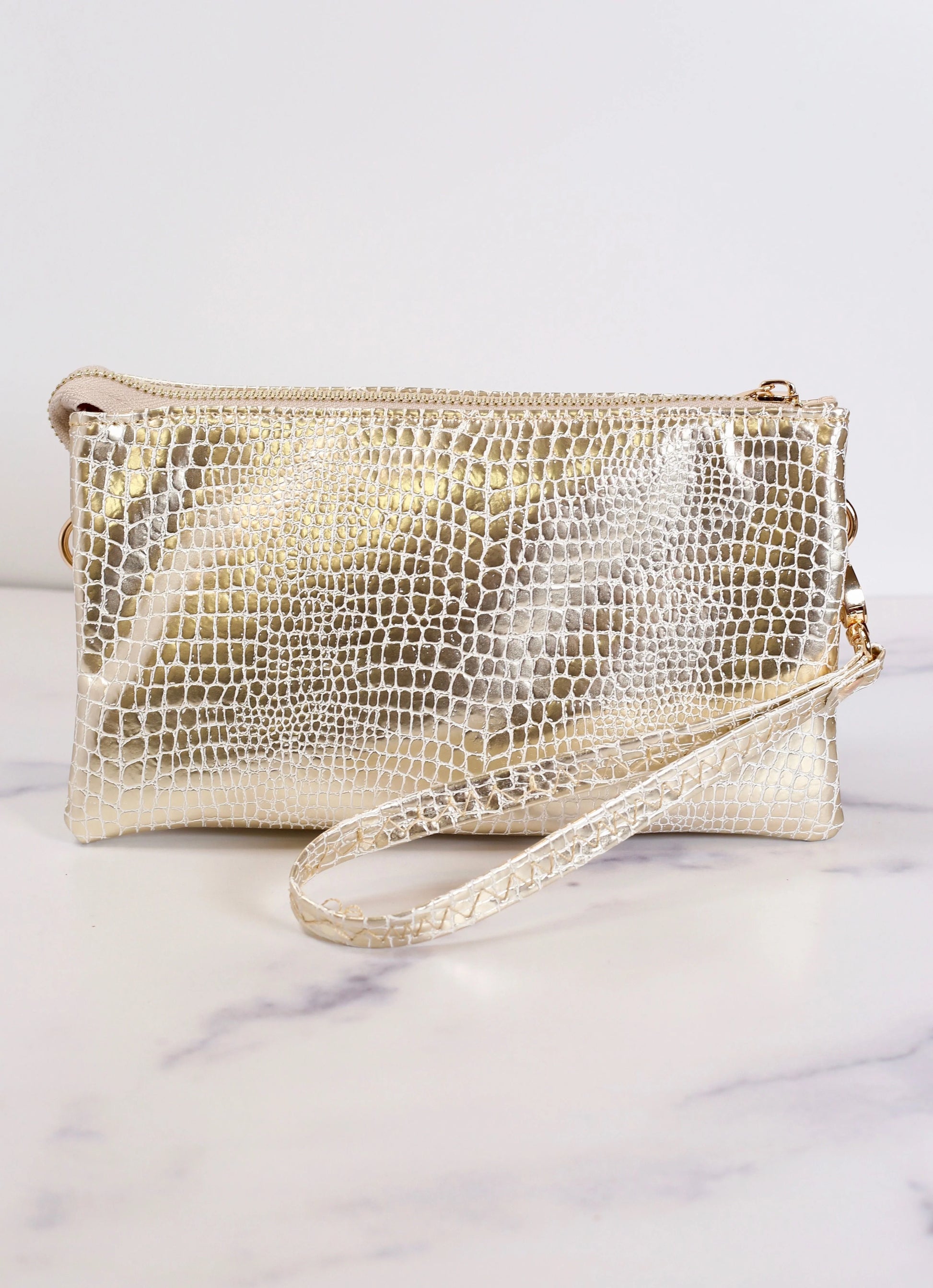 This is our all time best selling bag. It is the perfect year round bag, and an absolute staple for your wardrobe. This purse includes a crossbody strap and wristlet strap. There is an internal zip compartment and credit card slots as well. Use it alone, or throw it in your larger bag to keep things organized.