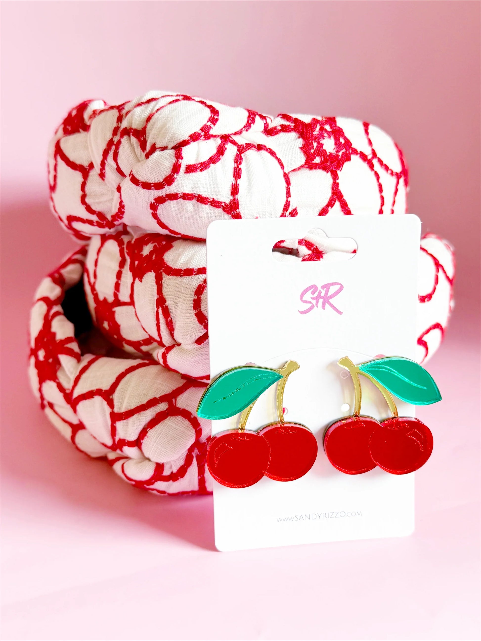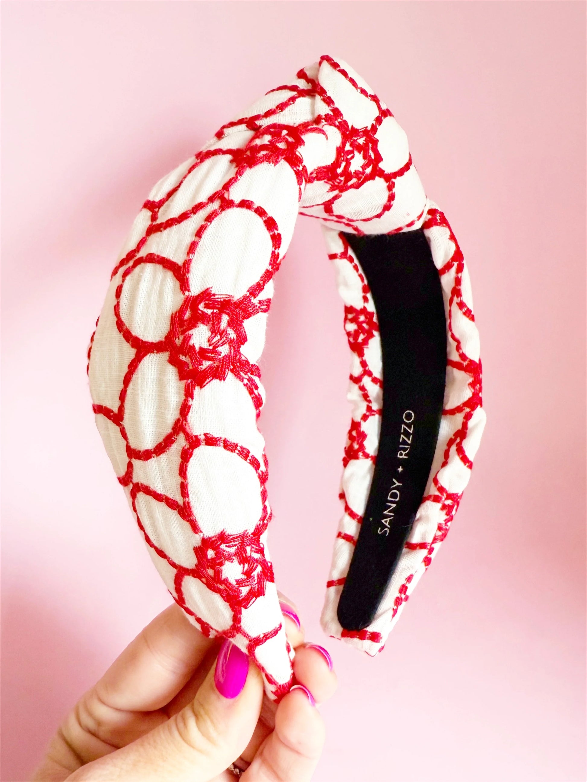 White headband with red daisies sewn in. The perfect headband for gameday, Fourth of July, Memorial Day, and every day!