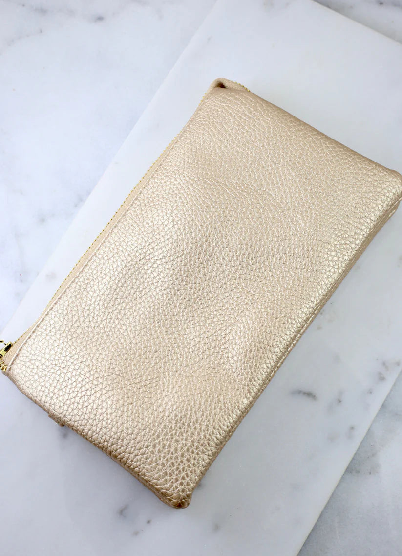 This is the perfect year round bag, and an absolute staple for your wardrobe. This purse includes a crossbody strap and wristlet strap. There is an internal zip compartment and credit card slots as well. Use it alone, or throw it in your larger bag to keep things organized.