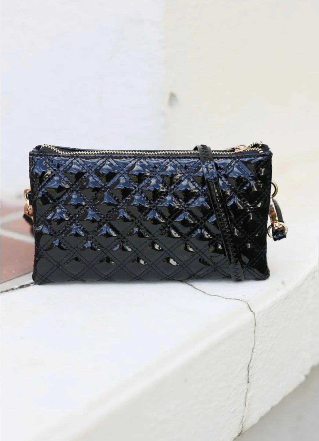 Liz Black Patent Crossbody Bag