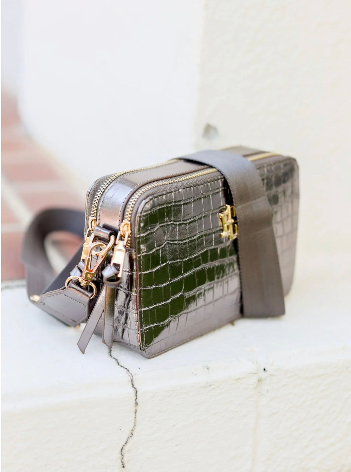 This structured, camera-style crossbody has a compact body which makes it perfect for everyday wear and travel. It has a double top zipper closure and features an open pocket on the back of the bag. The nylon strap is adjustable and removable as well.