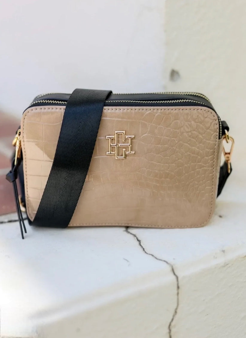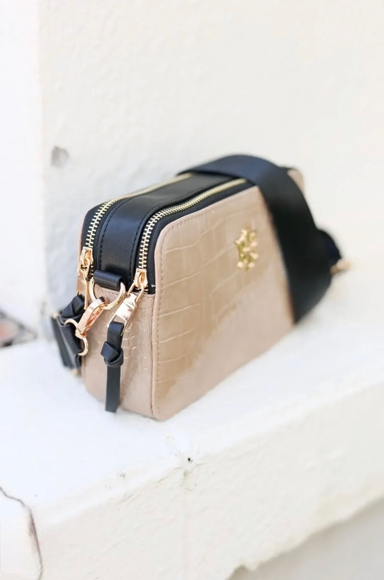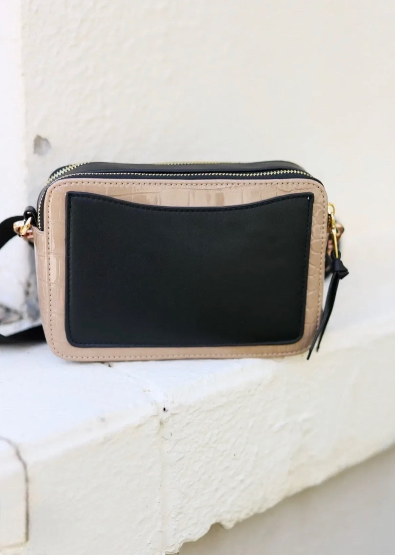 This structured, camera-style crossbody has a compact body which makes it perfect for everyday wear and travel. It has a double top zipper closure and features an open pocket on the back of the bag. The nylon strap is adjustable and removable as well.